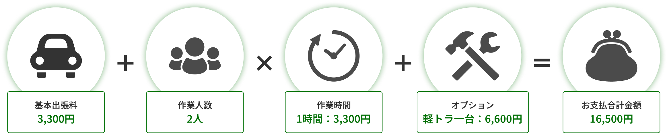 作業員2人で1時間作業し、軽トラ1台を使用した場合